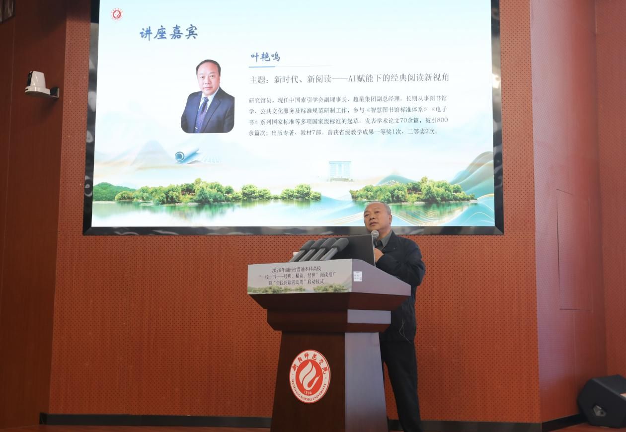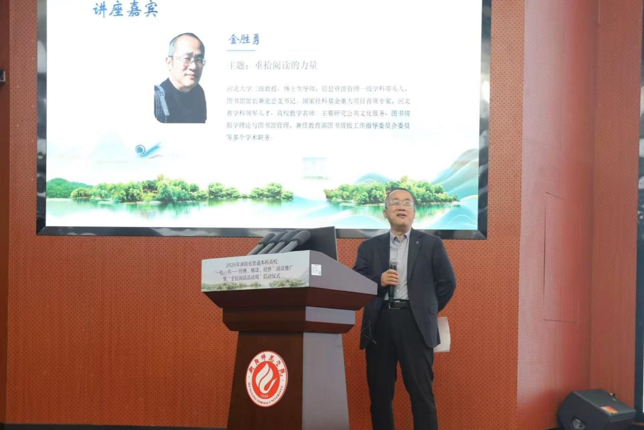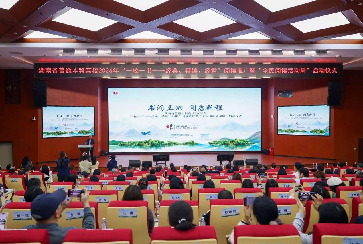 四月的雁城,春潮涌动,文脉奔流。2026年4月16-18日,衡阳师范学院图书馆报告厅内,来自全省41所普通本科高校图书馆、衡阳市图书馆及师生代表近600人齐聚一堂,共襄盛举,湖南省普通本科高校2026年“一校一书——经典、精读、经世”阅读推广暨“全民阅读活动周”启动仪式在此庄严启幕。