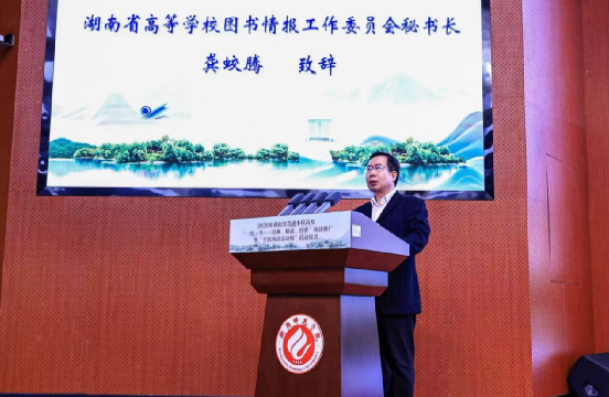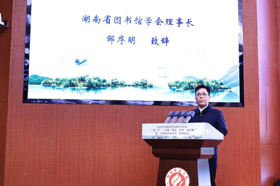 衡阳师范学院党委副书记陈敏以东道主之忱率先致辞。他指出,当人工智能可以代写千言万语,我们比任何时候都更需要守护“读书须尽苦功夫”的定力。作为一所百廿师范院校,衡师始终以阅读铸师魂、润师德,近年来通过“筑梦书屋”“乡村振兴朗读者”“100天,阅读红色印记”等一系列创新性阅读实践,让阅读走进课堂、服务社会。他呼吁全省高校携手,在建设书香湖南中贡献应有的智慧与担当!